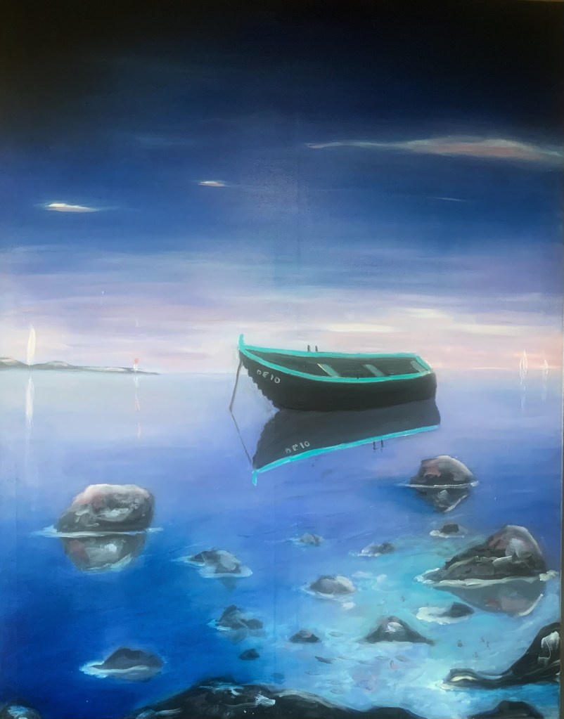 Oil and epoxy on canvas 80 x 100 cm. NOK. 14.500,-